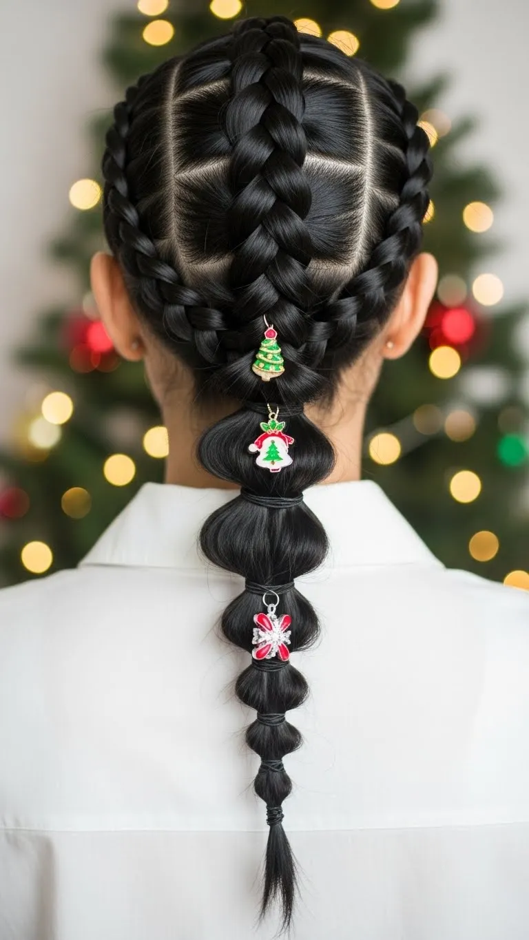 Spiral braids twist elegantly and look fun. Braid hair into spirals and attach small charms or beads for Christmas. DIY-friendly with a comb and elastic bands. Works for medium to long hair. Great for family photos or casual holiday outings. The style is festive, fun, and easy to recreate in under an hour.
