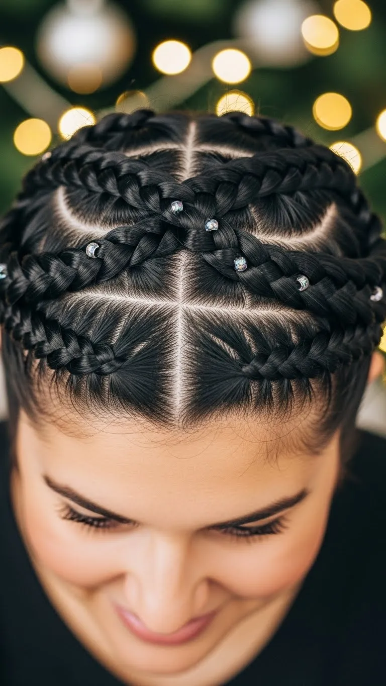 Infinity braids loop beautifully along the head. Create two or more braids in overlapping patterns. Add small beads for a festive touch. Works for medium-length hair. DIY-friendly, simple, and affordable. Perfect for family photos and holiday events.