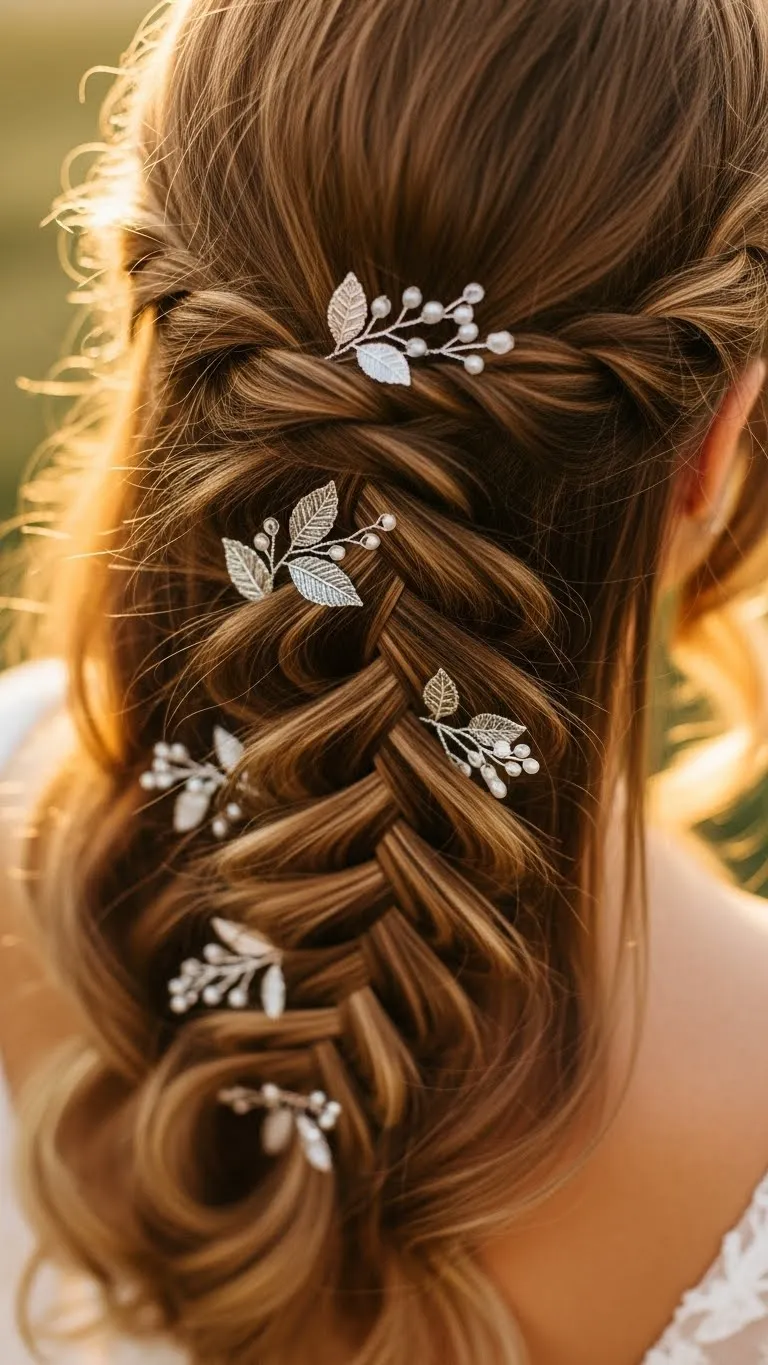 Mini braided twists add texture to loose hairstyles. Braid small sections and tuck in festive clips or beads. Great for medium to long hair. Simple, stylish, and budget-friendly using pins or craft decorations.