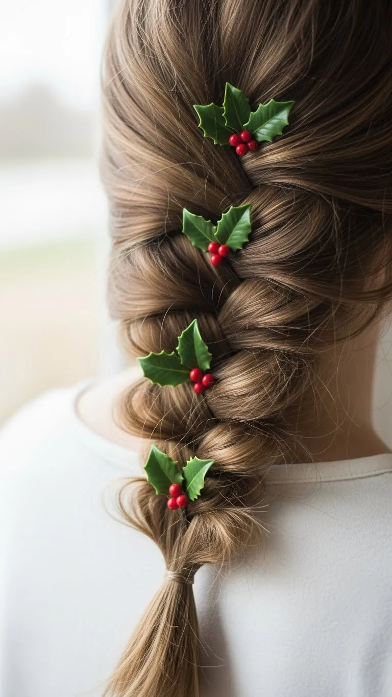 A braided ponytail is both practical and stylish. Secure a ponytail, then braid a section and wrap it around the base to hide the hair tie. Add sparkly elastics or tiny ornaments for a festive look. Ideal for busy days or holiday shopping trips, it keeps hair neat while still showing effort. Tip: curl the ponytail lightly for extra flair without additional heat styling.