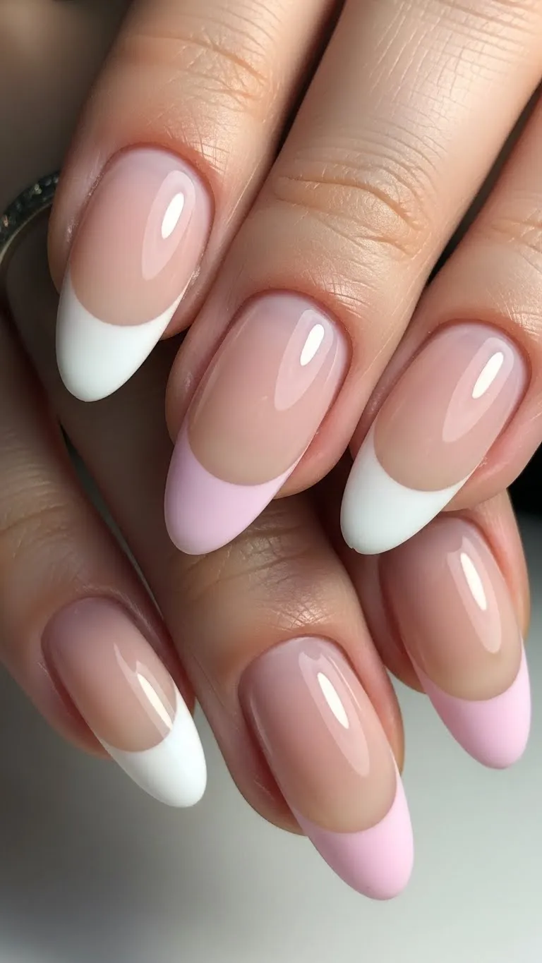 French tips are classic, but a modern twist makes them unique. Try pastel tips instead of white for a soft, romantic look. Use tape or stickers for easy DIY application. Budget-friendly tip: Stick to one color palette to maintain elegance. You can add tiny dots or a thin glitter line above the tip for subtle flair. This design is versatile for all occasions and always feels date-night ready.