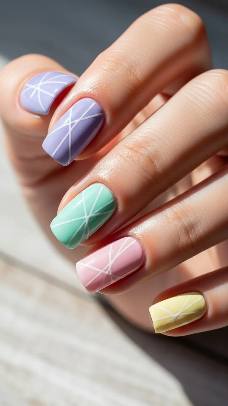 Pastel stripes are playful yet classy. Use soft colors like pink, mint, and lavender, and add thin stripes with a striping brush. This design is easy for DIY and doesn’t need professional tools. Affordable tip: Mix and match existing polishes for variety. Perfect for brunch dates or casual evenings, giving nails a cheerful and stylish appeal.