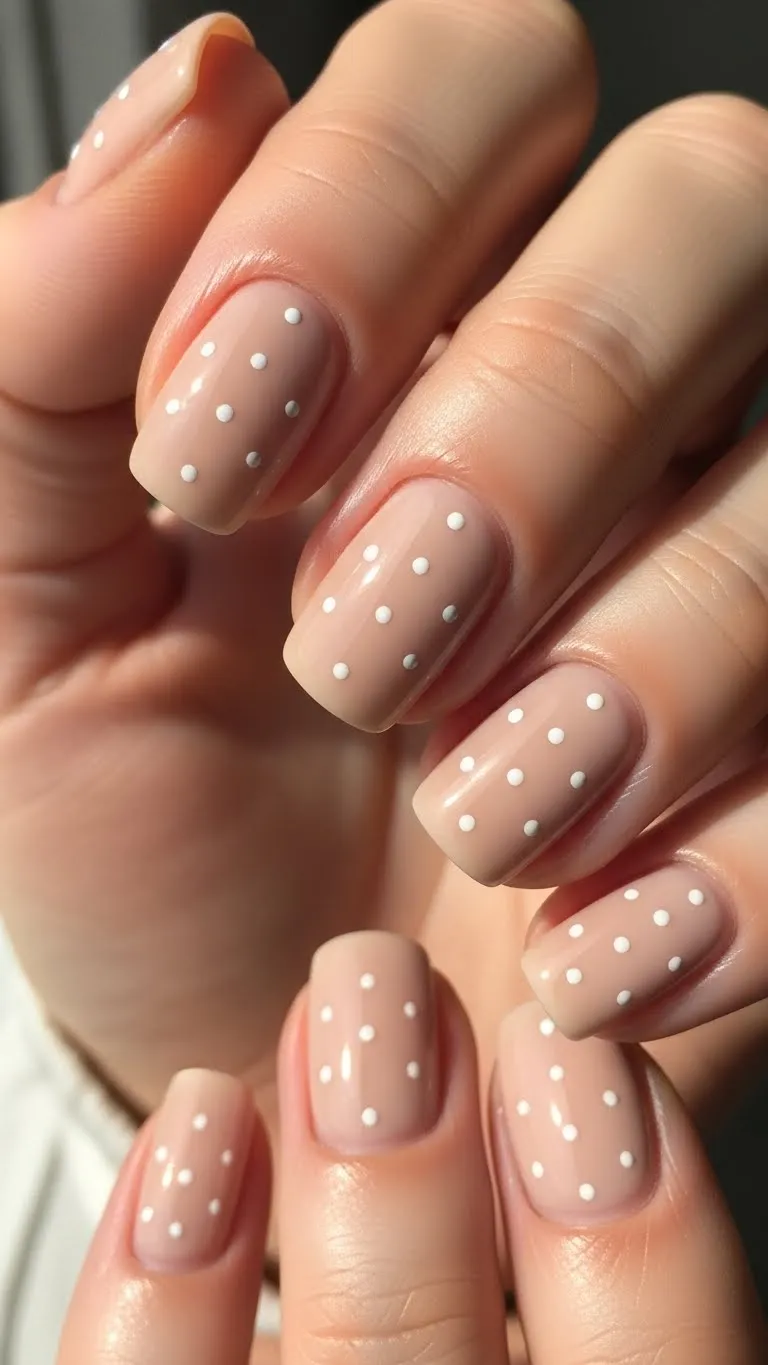 Tiny white dots are playful and clean. Keep the base nude and use a dotting tool for precision. This simple DIY design is inexpensive and fast. Works for casual or low-key evenings, giving nails a subtle, cute touch.