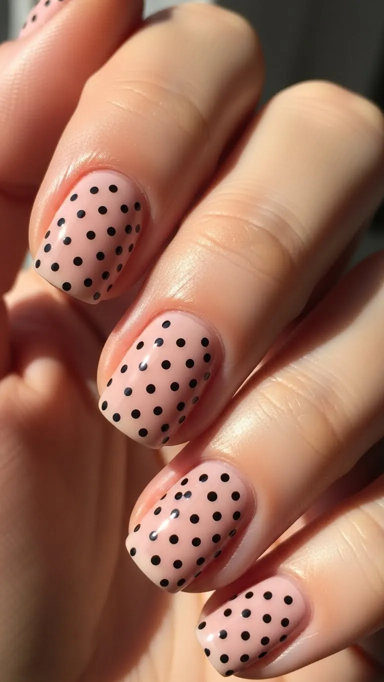 Polka dots are cute and playful. Paint your nails a soft base, then use a dotting tool or toothpick for tiny black dots. Mix sizes or colors for a fun twist. This easy DIY style takes minutes and adds personality without feeling flashy. Polka dots work on all nail lengths and shapes. Affordable and fun, this design is ideal for a lighthearted date night, especially if you want nails that spark conversation.