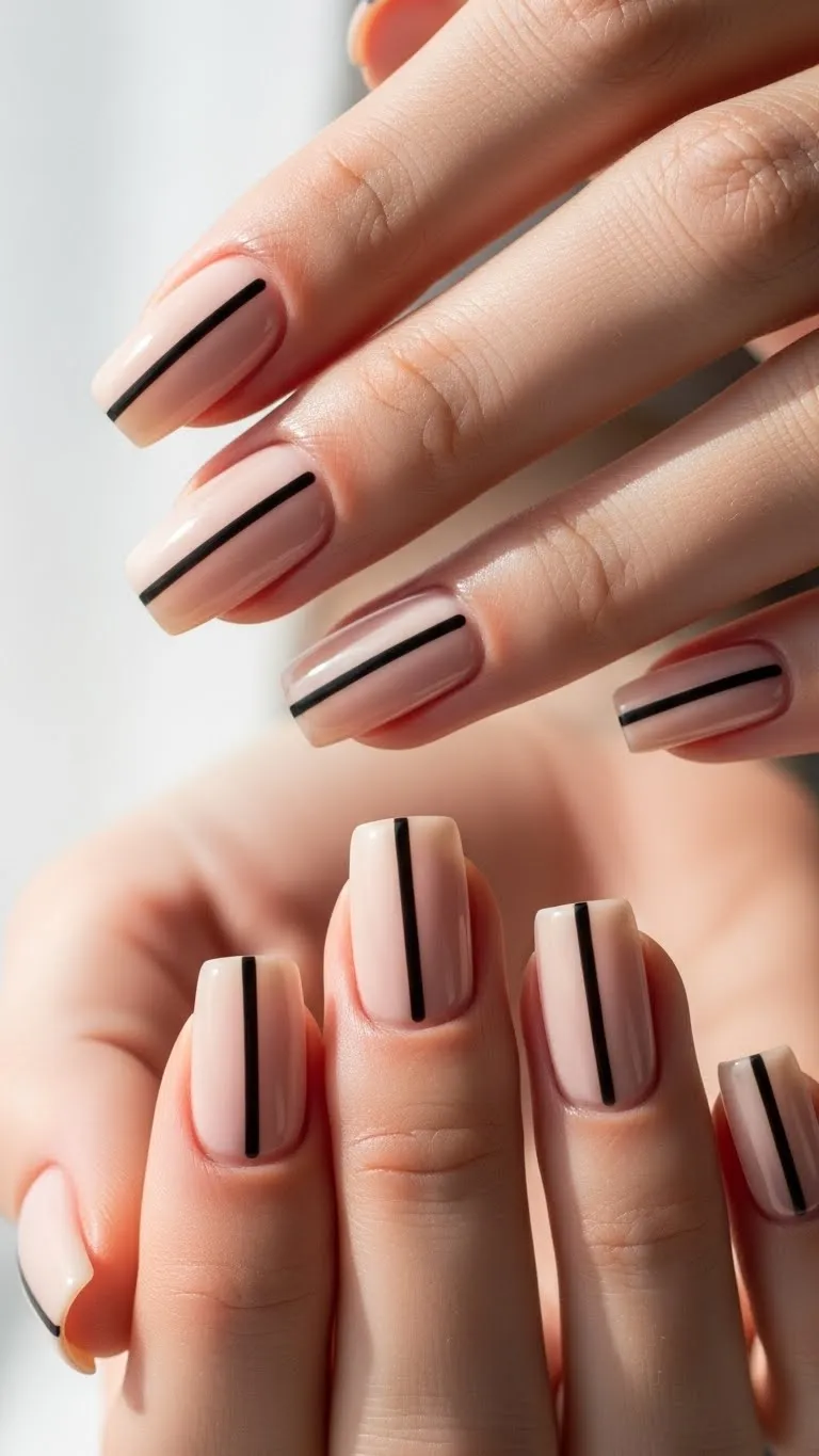 Minimalist lines are simple but impactful. Paint your nails nude, then use a thin brush or striping tape for straight black or metallic lines. This modern look is easy and affordable, requiring only basic polish tools. It’s great for casual or classy date nights, adding a stylish touch without extra effort. You can switch colors depending on mood or outfit. Less really is more with this design, keeping your nails chic yet understated.