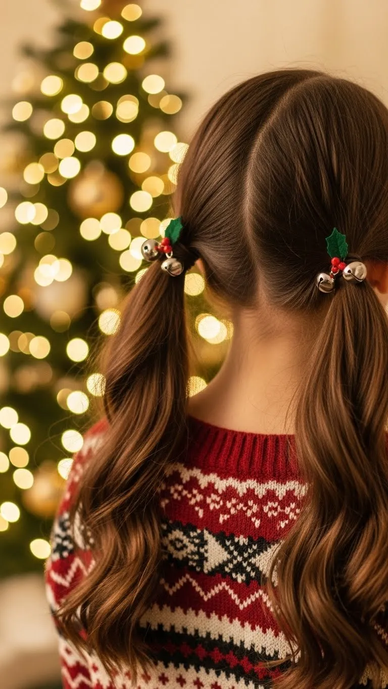 Jingle bell pigtails are interactive and festive. Make two pigtails and attach tiny bells to hair ties. Kids enjoy the sound when moving. Works for most hair types. Affordable using leftover craft bells or ornaments. Great for school events, parties, or casual holiday fun. Fun, playful, and easy to achieve in minutes.
