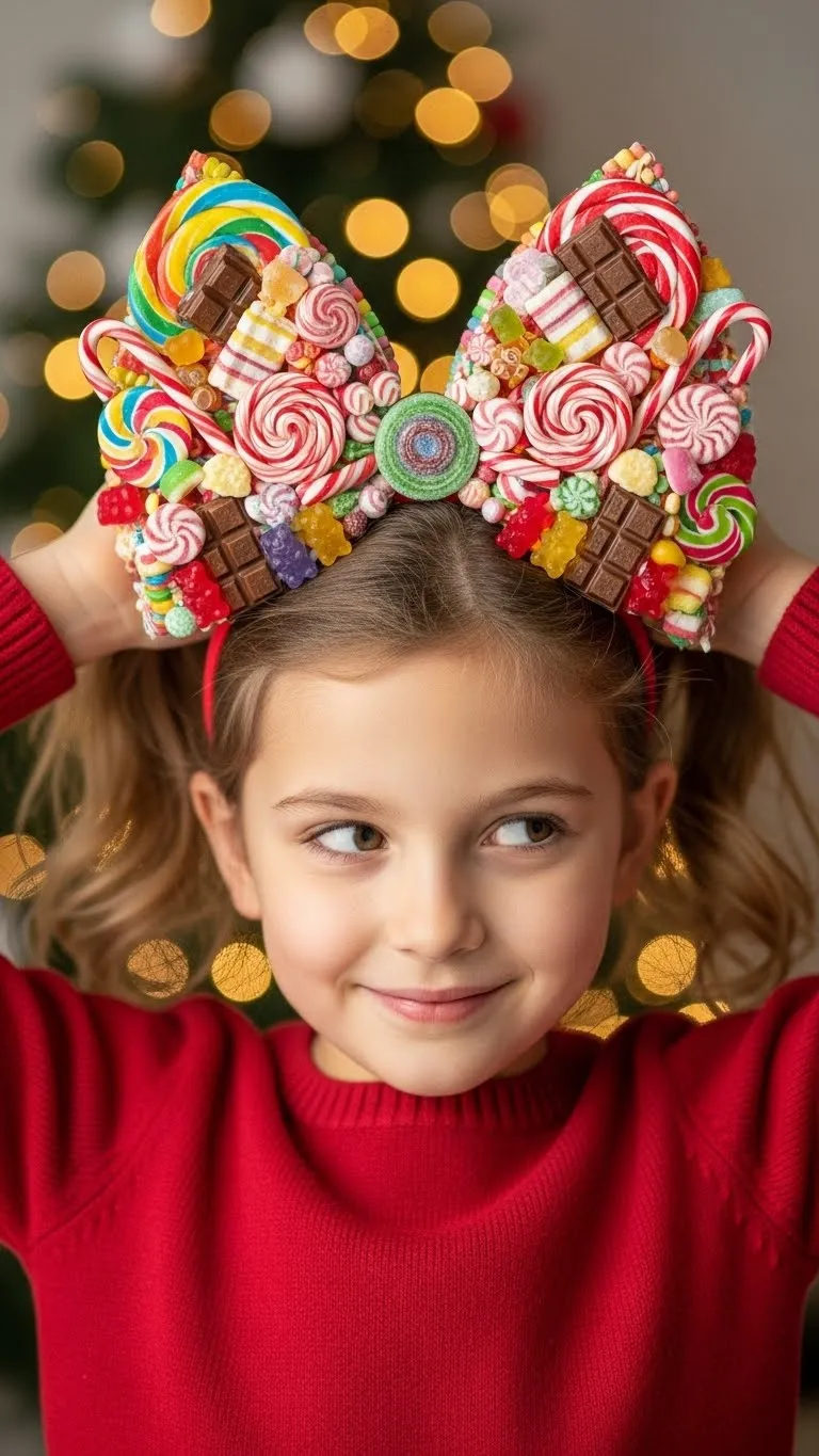 Use a candy bow headband to pull hair back easily. Simple, cute, and festive. Works on all hair lengths. Kids love wearing themed accessories. Affordable and quick. Add curls to the ends for extra flair. Perfect for last-minute school or party-ready styles.