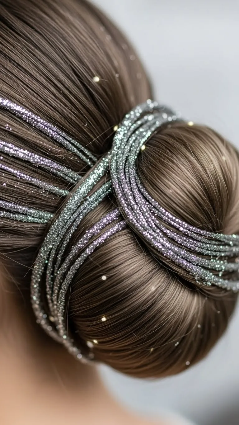 1. Glittery Side Bun