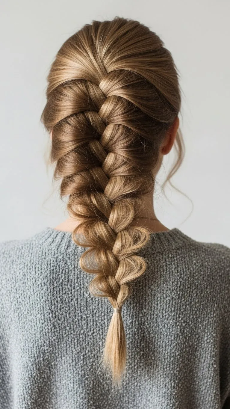 A loose French braid looks relaxed yet tidy. Start at the top and braid downward. Keep it wide by pulling gently on each section. Tie the end with a small ribbon for holiday flair. This works even if your hair is thick or wavy. It’s also great when you want hair out of your face while cooking or hosting.