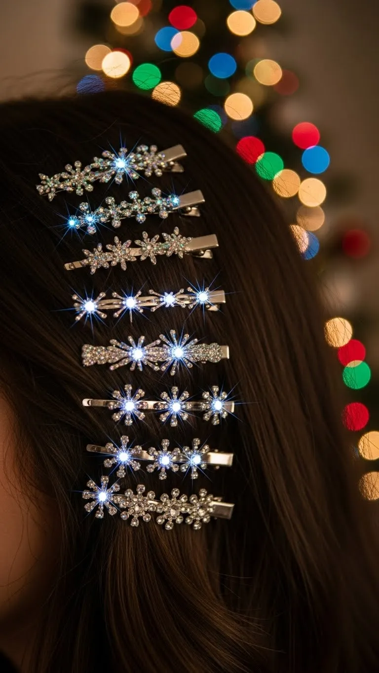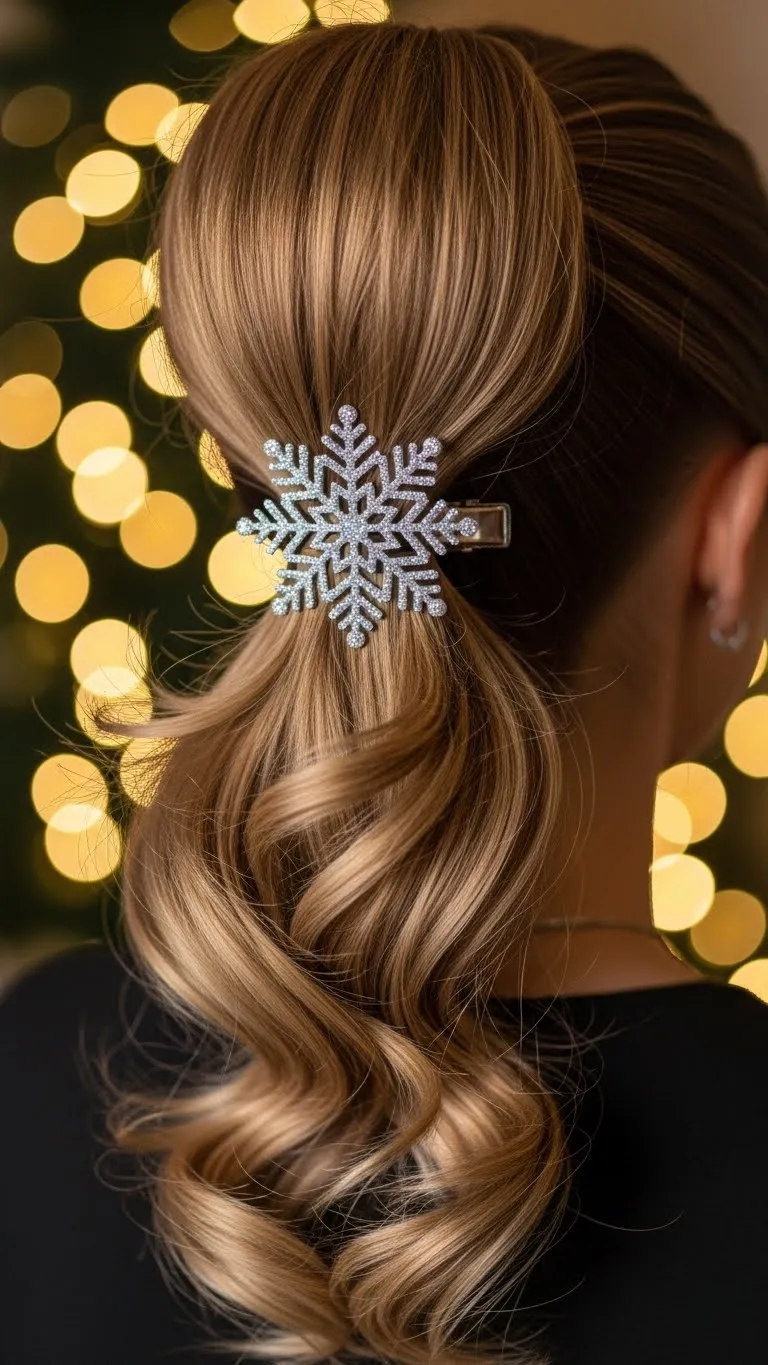 Gather your hair at the back and twist it once before securing it with a barrette. Let the ends fall naturally. This creates a simple flowy look. Choose a barrette that shines under Christmas lights. Even affordable pieces look nice. Curl the ends lightly if you want shape. This style stays comfortable and works for long events.