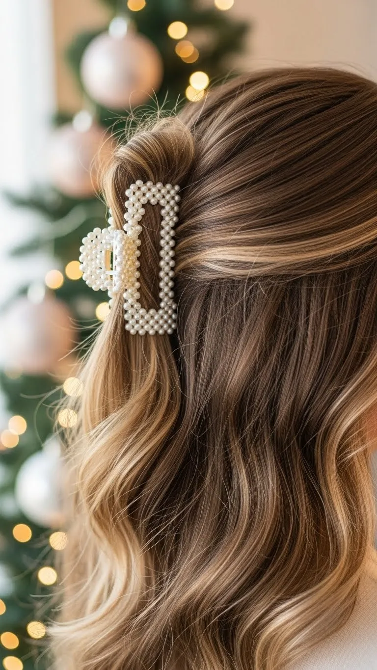 Curl your hair with loose waves. Pull the top half back and secure with a wide clip. Pearl clips look great for Christmas. If you want more lift, tease the crown slightly before clipping. This style works for busy schedules because it takes only minutes.