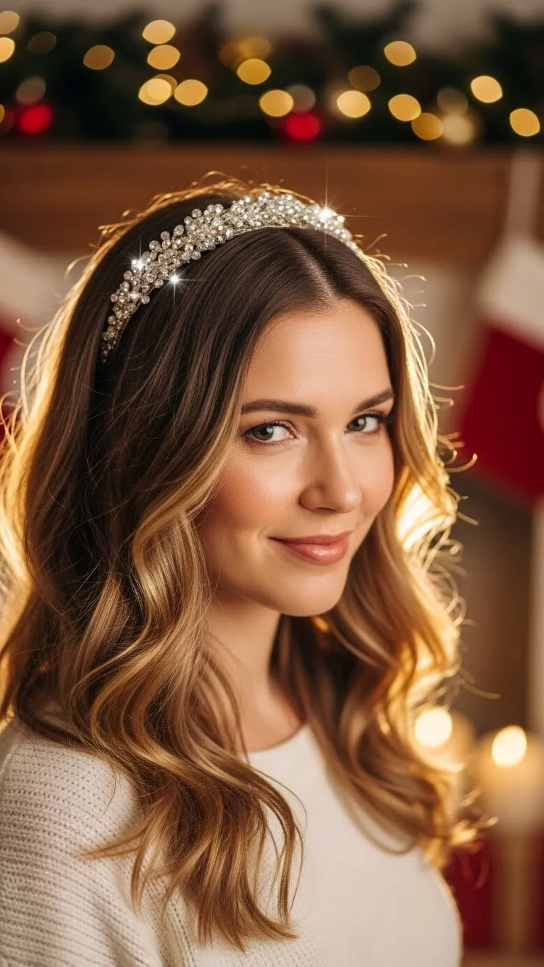 Curl your hair lightly. Slide on a sparkly headband. It keeps the focus on your face and saves time. Choose soft waves so the headband sits comfortably. This style works even on second-day hair. It’s also kid-friendly and quick.