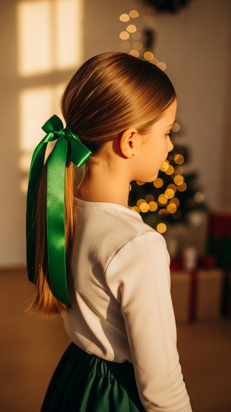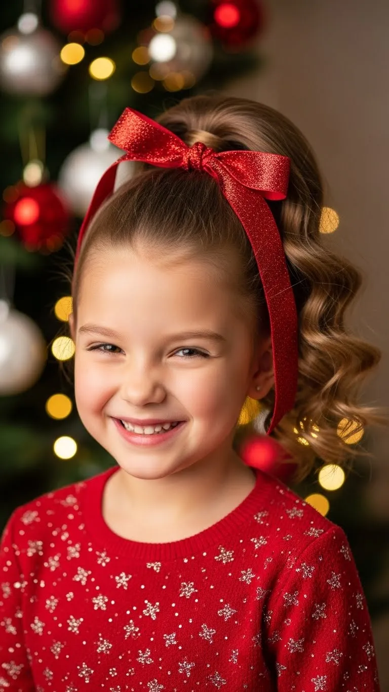 A sparkly ponytail is simple yet festive. Pull hair into a high or mid ponytail and secure it with a colorful, glittery ribbon. Add a few loose curls for movement. This style works on all hair types and takes under five minutes. You can use inexpensive hair ties and clip-in ribbons from a craft store. It’s perfect for school performances or holiday photos. For extra flair, attach tiny bells or festive clips along the ponytail.