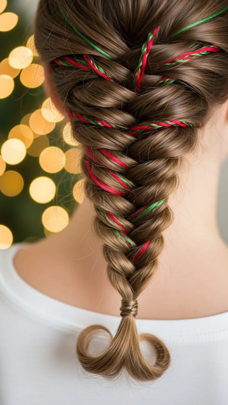 Fishtail braids are versatile and festive. Add holiday flair by weaving in colored threads or ribbons. Secure with a small elastic and optional bow. Takes slightly longer than a basic braid but still manageable. Works best on medium to long hair. Budget tip: repurpose threads from crafts or scrap fabric. The style is playful and keeps hair neat for holiday activities.