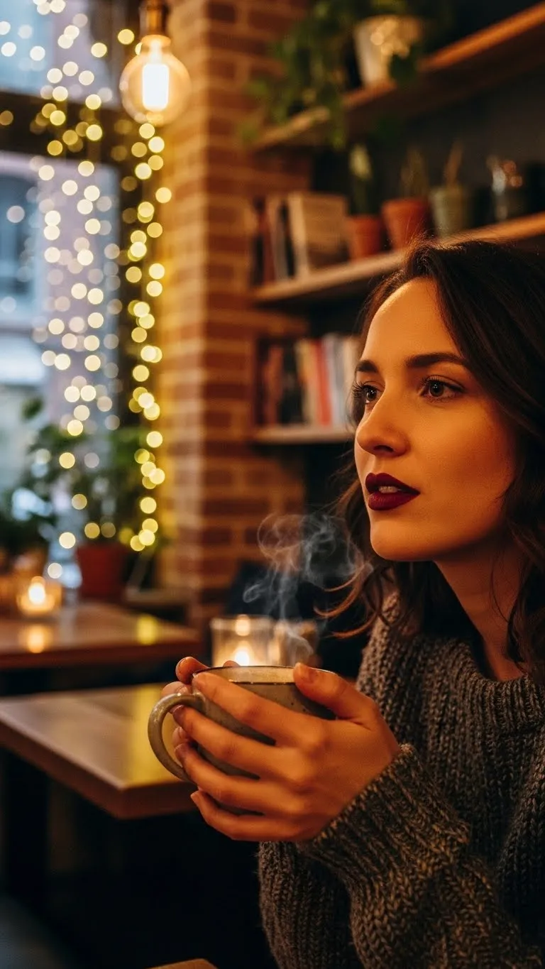 Wine-red lipstick adds a moody, dramatic touch. It’s perfect for autumn and winter. Apply with a clear liner to prevent feathering. DIY option: blend a regular red lipstick with a tiny dab of purple for a wine tone. Keep eyes minimal to focus on lips. This bold shade works for evening dates, dinners, or events where you want attention without being loud.
