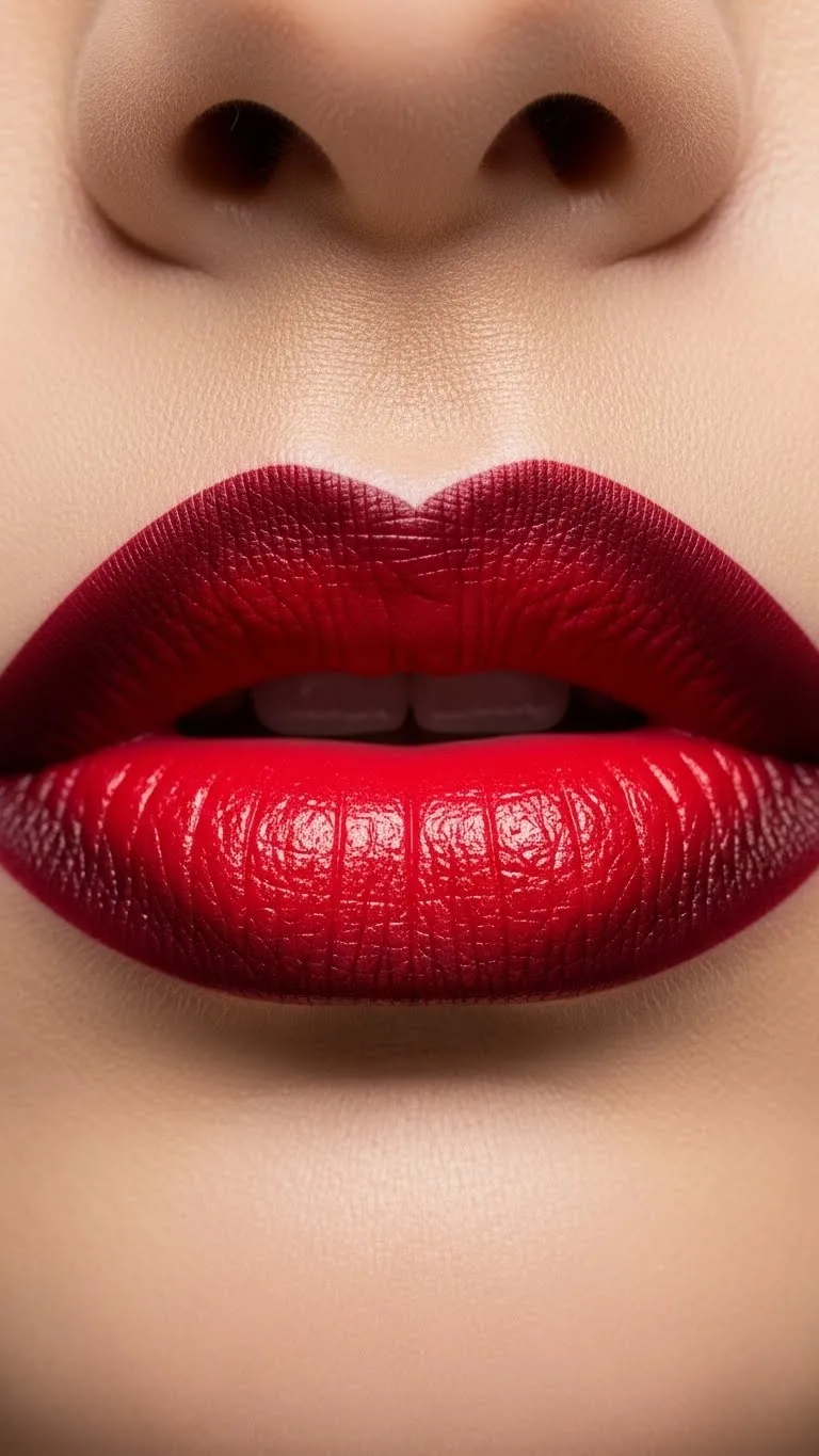 Ombre lips add depth and dimension. Start with a darker red on the outer corners and a brighter shade in the middle. Blend gently with a fingertip or brush. This technique makes lips look fuller naturally. Experiment with affordable red tones from your collection. Ombre works for selfies, parties, or casual days when you want a subtle twist on classic red.