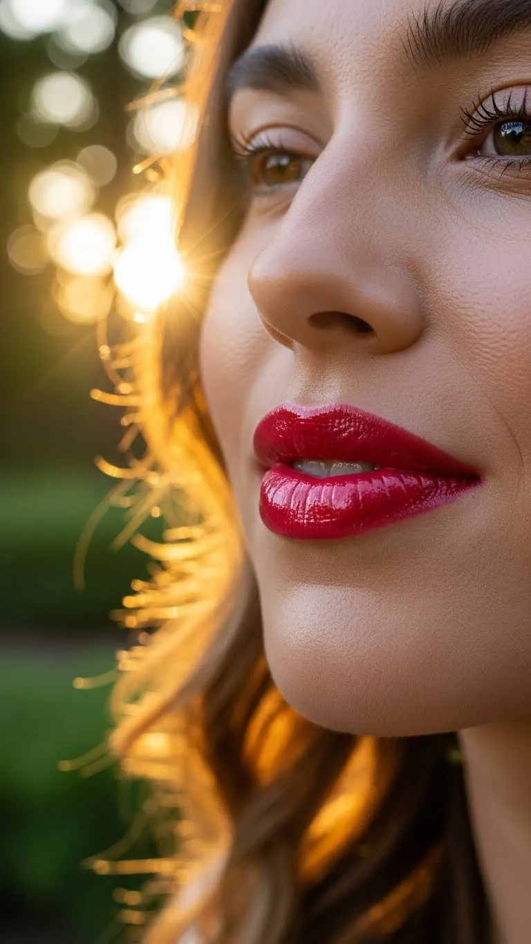 Glossy red adds instant vibrancy. It feels playful and youthful. You can layer a clear gloss over a traditional red lipstick for shine. DIY tip: mix a tiny bit of Vaseline with your lipstick for a smooth, budget-friendly gloss. Keep the rest of your face minimal to let the lips stand out. It’s perfect for date nights or selfies. Touch-ups are quick, and the reflective finish makes lips look fuller without extra effort.