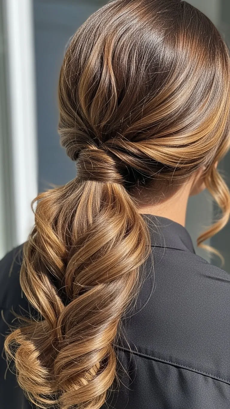 Low side ponytails combine practicality and romance. Curl hair first, then sweep it to one side and tie loosely. Add a small ribbon or clip for personality. Heat-free option: twist damp hair to one side and pin overnight. Soft curls frame the face, creating a flattering and approachable look. It’s easy, comfortable, and keeps curls in motion all day. Works beautifully for casual outings or semi-formal events.