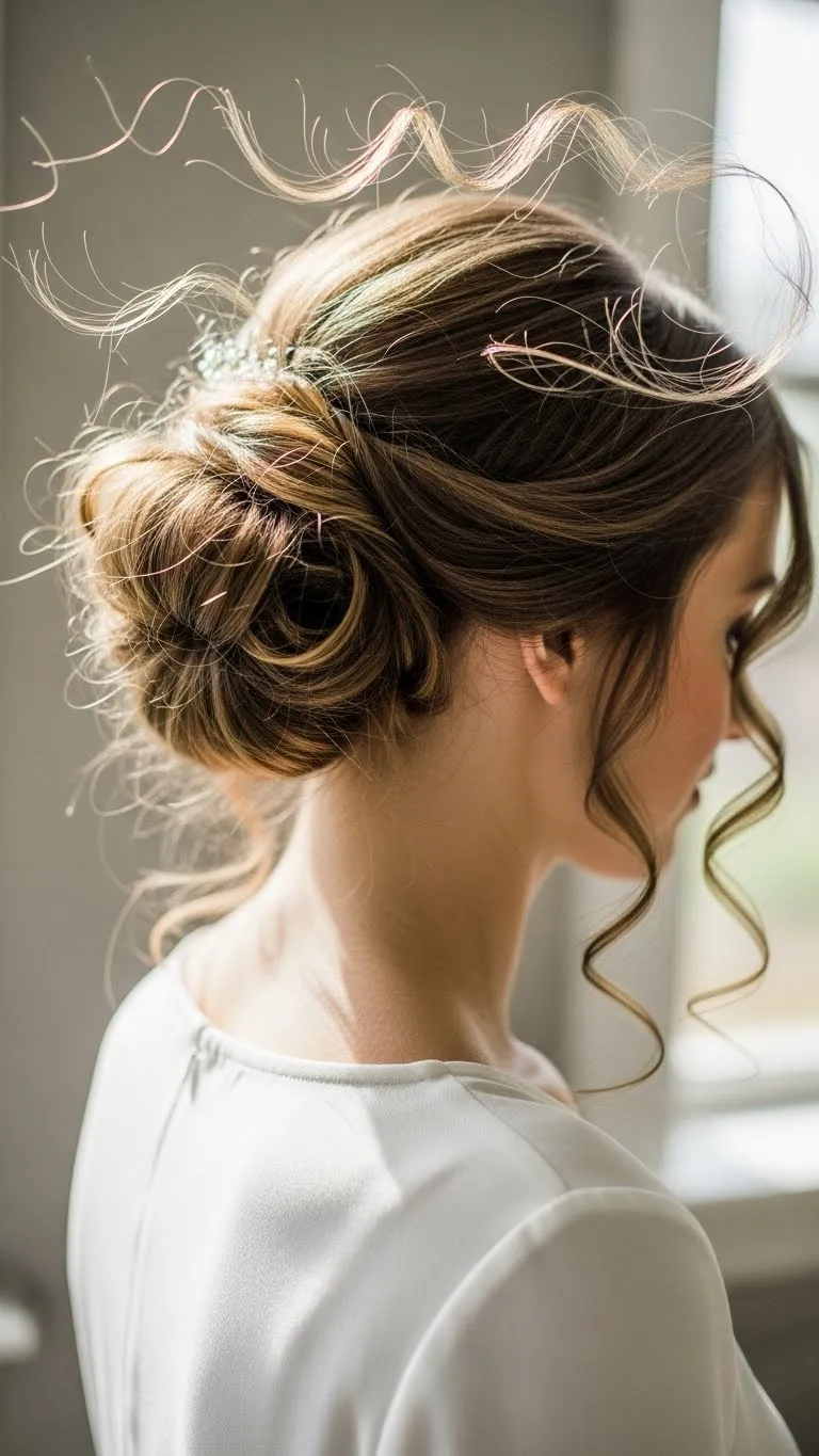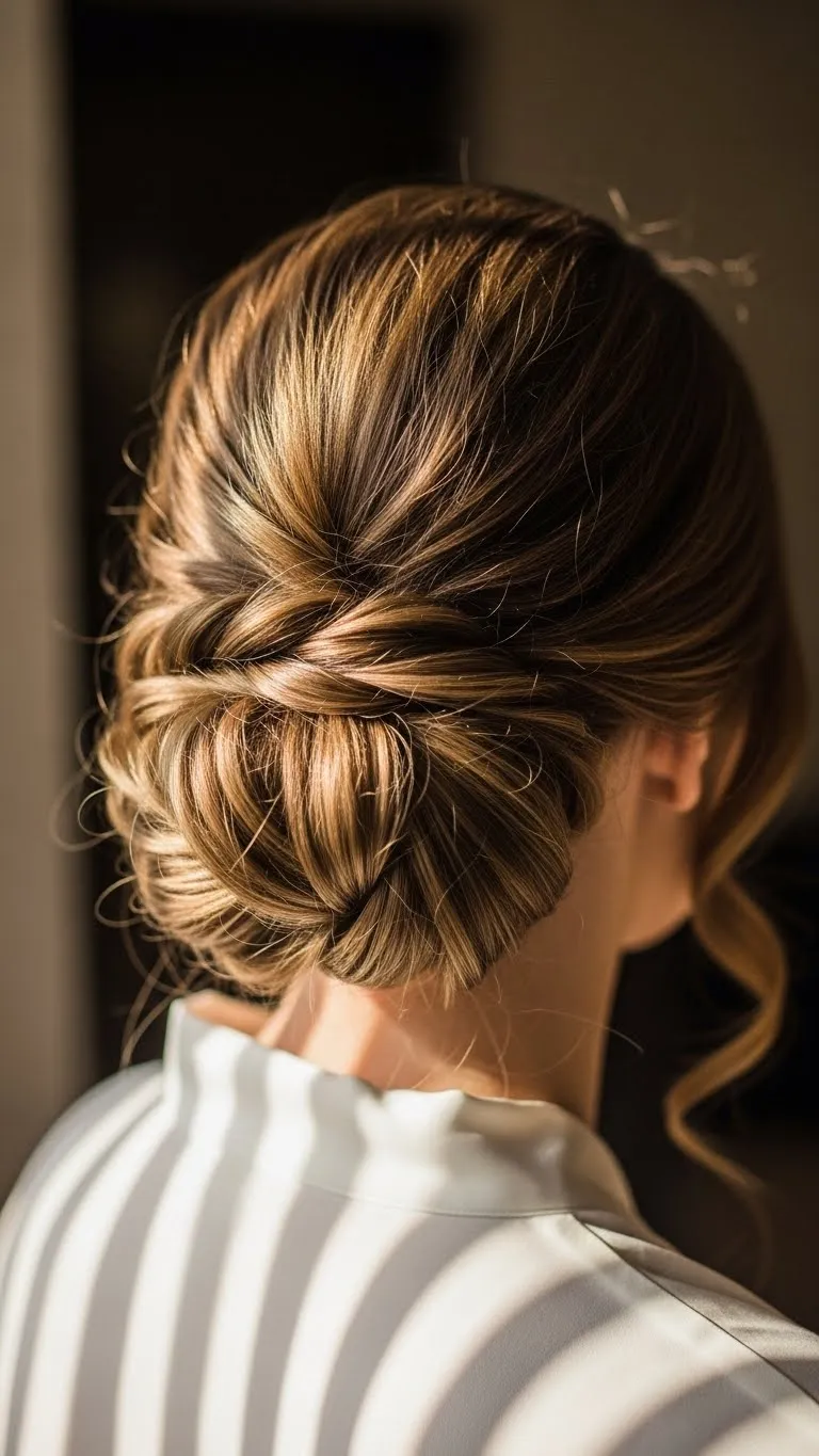 Twisted low buns are elegant and manageable. Curl your hair lightly, twist sections, and pin them at the nape to form a bun. Loose curls around your face soften the look. You can do this without expensive tools by twisting damp hair and letting it air-dry. This style is perfect for evening gatherings or casual workdays. Adding small pins or hair accessories can enhance the romantic vibe. The combination of structure and loose curls keeps the style interesting yet relaxed.