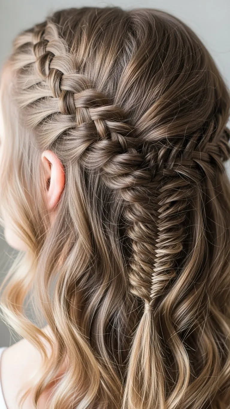 The waterfall braid highlights curls beautifully. Curl hair first, then braid along the side, letting strands fall naturally through the braid. Secure with pins or elastics. Budget-friendly: practice at home with minimal accessories. Perfect for medium to long hair, this style feels romantic and effortless, combining intricate appearance with simple execution. Adds texture and interest without heavy styling.