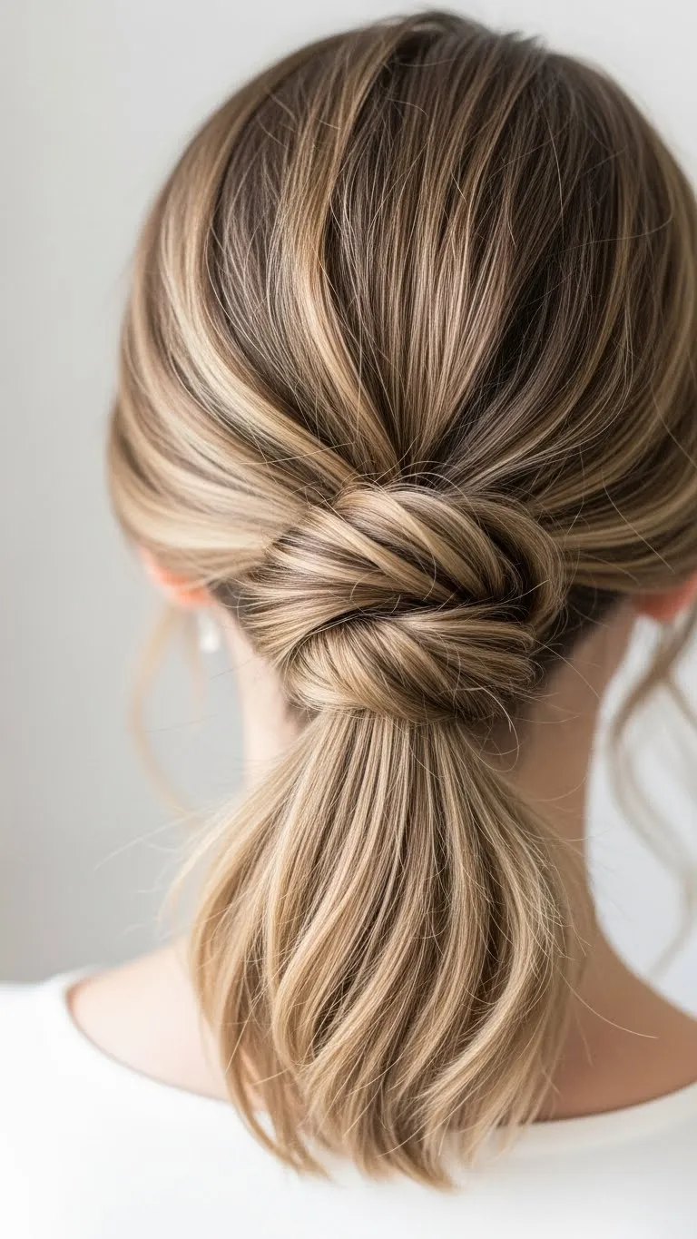 The knotted low updo is understated, elegant, and perfect for both casual and semi-formal events. Begin by dividing your hair into two or three sections and loosely knot each section, pinning them together at the back of the neck. Allow some strands to fall naturally to soften the look and create a romantic effect. This style works best on medium to long hair and is extremely adaptable. To enhance the appearance, you can add small decorative pins, combs, or even flowers to the knots. One of the biggest advantages of this style is that it looks complex but requires minimal tools—just pins, elastics, and a little patience. Light teasing at the crown can add volume and texture, giving the hairstyle more dimension. For fine hair, a touch of texturizing spray can help create grip and fullness. The knotted low updo is perfect for dinner dates, casual weddings, or even work events, offering a feminine, soft look that feels effortless and graceful.