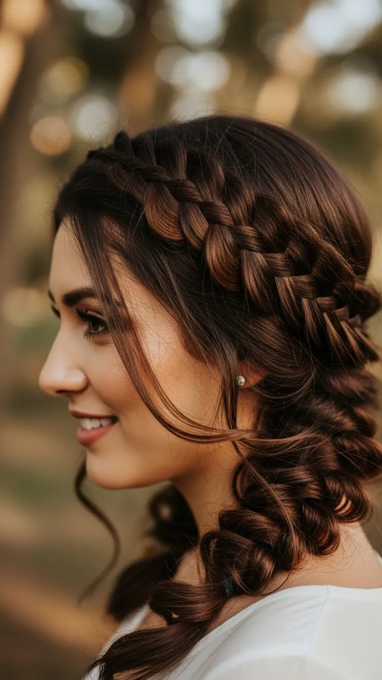 The braided side crown is an understated, romantic hairstyle that frames the face beautifully. Begin by braiding a section of hair along your hairline on one side and continue it toward the back, securing with pins once you reach the nape. Leave the rest of the hair flowing freely or in soft waves. This style works well for medium to long hair and suits casual, semi-formal, or even wedding occasions. For added flair, weave in a thin ribbon, clip, or small flowers along the braid. Lightly tease the roots if you want subtle volume and texture. It’s a beginner-friendly style that doesn’t require professional tools—just a comb, pins, and optionally a light hairspray. The braided side crown balances softness and structure, giving a polished look while maintaining a relaxed, romantic feel. Perfect for outdoor gatherings, brunches, or photoshoots, it’s a versatile, easy-to-create hairstyle that can be achieved at home with minimal effort.