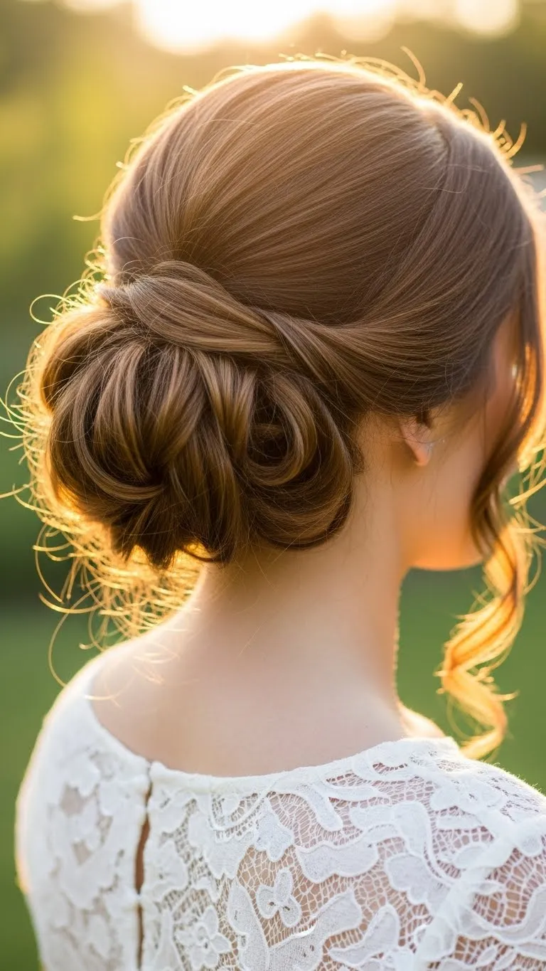 The twisted low bun is simple, chic, and perfectly romantic. To start, part your hair in the middle or slightly to the side. Divide your hair into two sections and twist each section toward the back of your head. Secure the twists with bobby pins or a small elastic at the nape of the neck. For a softer, more romantic look, pull out a few tendrils or strands around your face to frame it gently. This hairstyle works especially well for medium to long hair, but it can be adapted for shorter layers using extra pins. To add a little charm, slide in a decorative hairpin, fresh flower, or a pearl clip. It’s perfect for weddings, dinners, or casual parties. For a budget-friendly approach, simply use pins and elastics you already own, along with a light hairspray to maintain the shape. This updo is quick, versatile, and low-maintenance, offering a polished yet relaxed feel. Even beginners can achieve it in under ten minutes with a bit of practice. Its understated elegance makes it a go-to style when you want a look that feels romantic without appearing overly complicated.