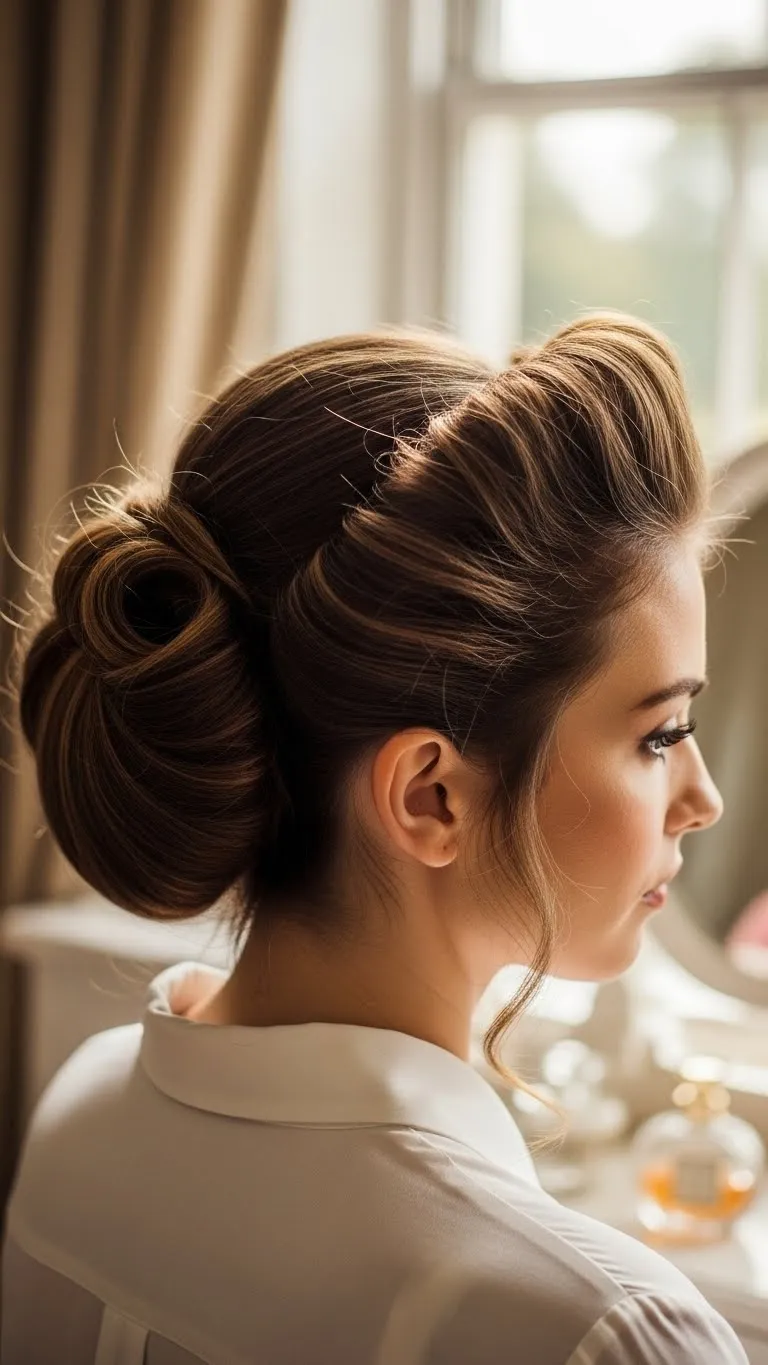 The romantic loose bun is effortlessly soft, casual, and elegant. Gather your hair loosely into a low bun at the nape, allowing curls and wisps to fall naturally around your face. Works beautifully on medium and long hair, creating a delicate, feminine frame. Lightly tease the crown for subtle volume and movement. You can add accessories such as hairpins, small flowers, or combs to elevate the style for weddings, parties, or photoshoots. A light hairspray ensures the bun stays intact while keeping hair flexible and soft. This updo is ideal for beginners because it requires only pins and a little patience to achieve a romantic, polished look. The beauty of the romantic loose bun lies in its effortless charm—it’s soft, approachable, and elegant all at once. Perfect for casual or formal events, it delivers a timeless feminine appearance that complements almost any outfit.