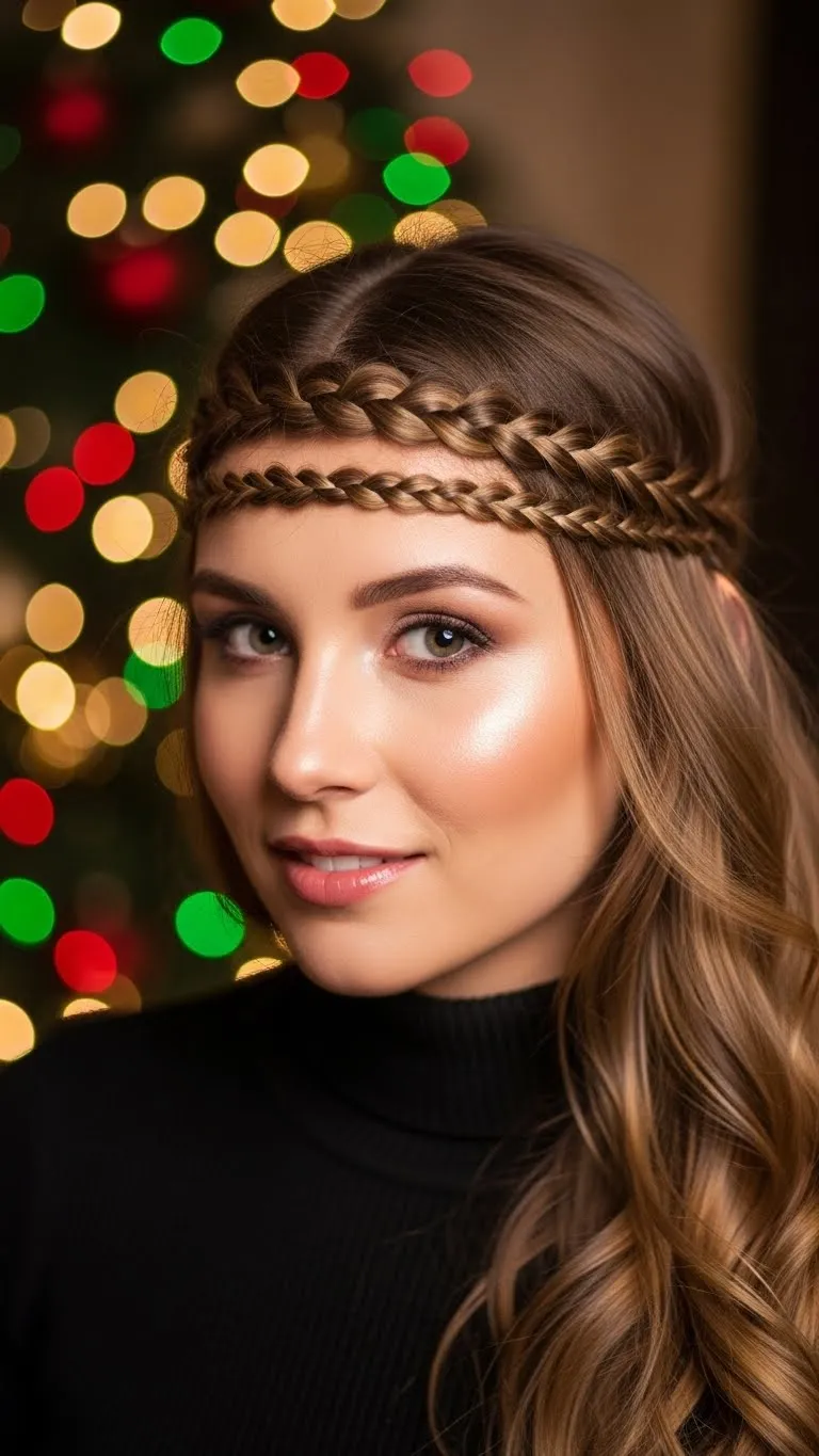 Create a braided headband by braiding a small section of hair near the forehead and pinning it across. Keeps hair away from the face and adds a unique, playful touch. Works with medium or long hair. Perfect for casual holiday brunches or indoor gatherings. Accessorize with small clips for festive sparkle.