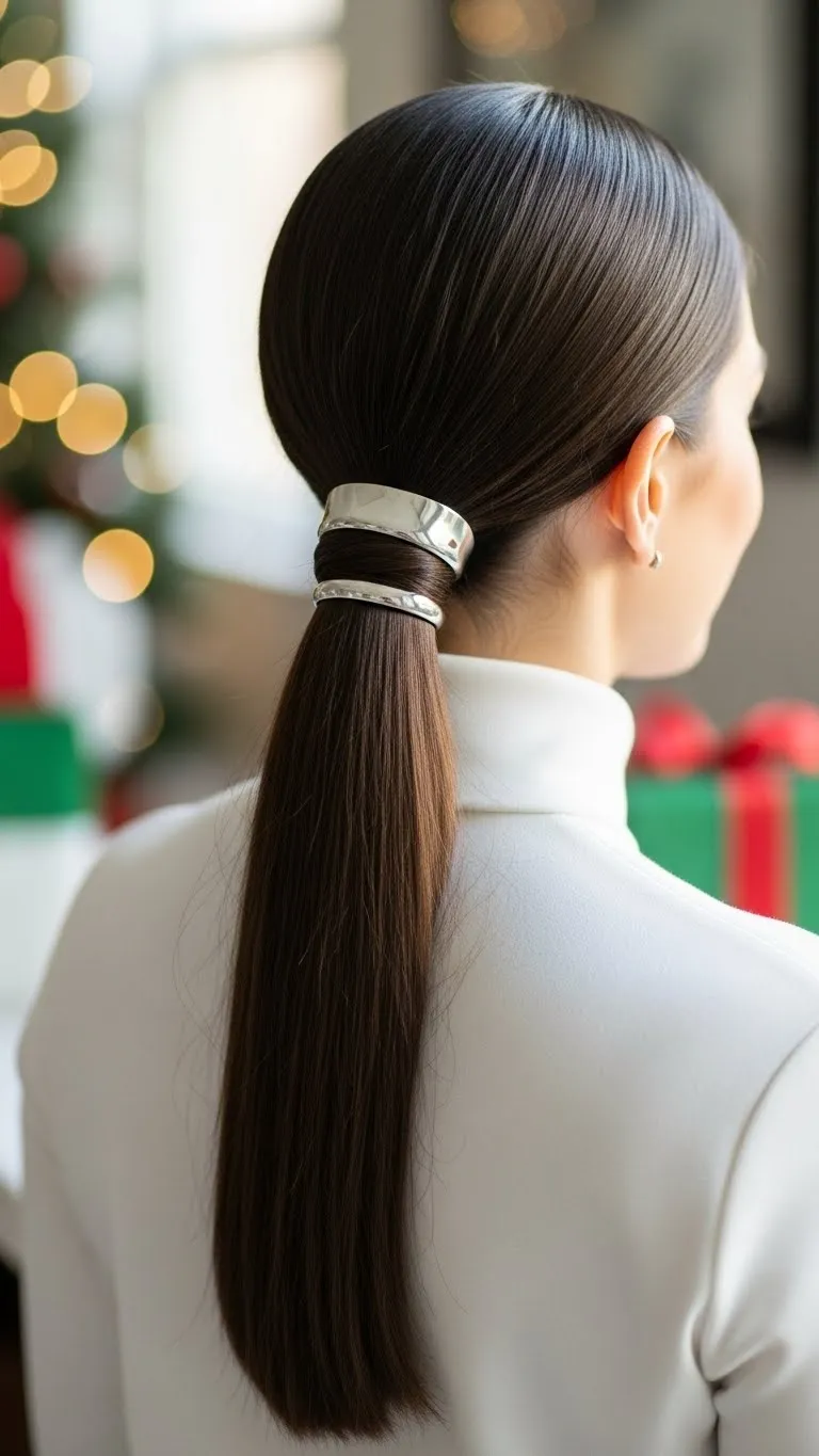 A sleek low ponytail is effortless and elegant. Smooth hair with a brush, gather it at the nape, and secure with a hair tie. Wrap a small section of hair around the elastic for a polished finish. Add a shiny clip or barrette for a festive accent. This style is quick, budget-friendly, and perfect for last-minute events. It works well with all hair types and keeps hair controlled while still looking stylish. Minimal effort, maximum chic.